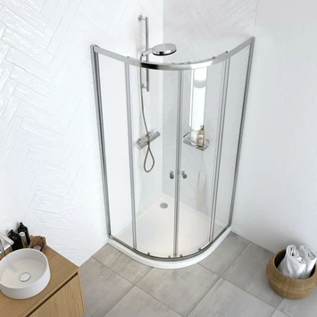 Sealskin Hooked Vierdelige Kwartronde Douchecabine Met Schuifdeuren 90x90x200 Cm, 6 Mm Helder Veiligheidsglas Met Antikalklaag Zilver Hoogglans